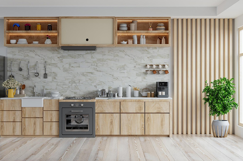 - بسته به اولویت و آب و هوا کابینت و کف پوش های چوبی یا تخته های عریض را انتخاب کنید.
